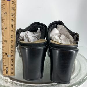 Womens Wedge Heels Naot Shoes Mule Boho Clogs Black Sz 8 Leather Slip On Buckle