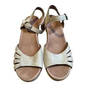 Step into effortless style with these adorable wedge sandals, designed to elevate your warm-weather wardrobe. The neutral, goes-with-everything color and subtle metallic sheen add a touch of understated glamour. Featuring a comfortable wedge heel that provides height without sacrificing stability, these sandals have an adjustable ankle strap with a delicate buckle to ensure a secure and customized fit. The open-toe design with decorative cutouts keeps your feet feeling cool, while the soft footbed offers all-day comfort. Perfect for a casual brunch with friends, a stroll through the park, or a laid-back evening date.