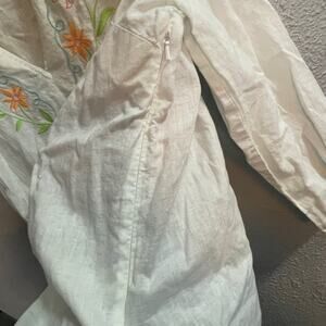 Gently used. No seen flaws. 55% Linen 45% Cotton Beautiful for spring and summer!