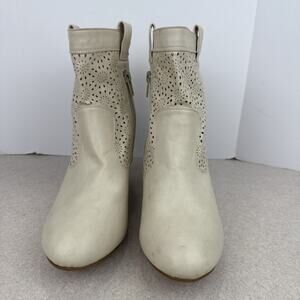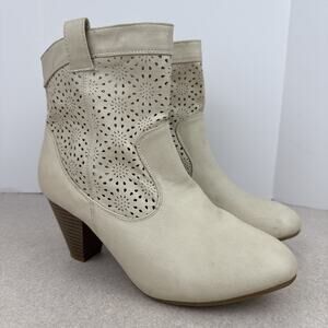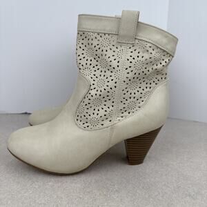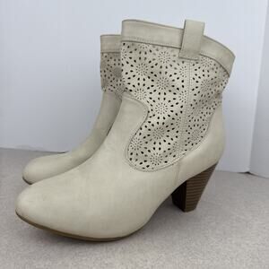 Women’s Western Beige Ankle Heeled Boots Booties Size 8/9