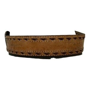 Stylish brown leather belt featuring an ornate black buckle. Perfect for adding a touch of elegance to any outfit. Nice western core leather belt with western rhinestone buckle in waist size 32” - 34”