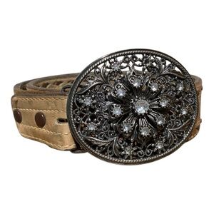 Women’s Western Core Vintage Leather Belt With Metal-Rhinestone Buckle Sz 32-34