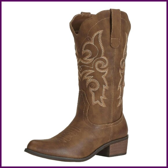 Women's Western Cowgirl Boots Mid Wide Calf Pointed Toe Riding Country
