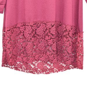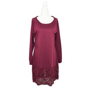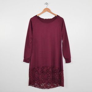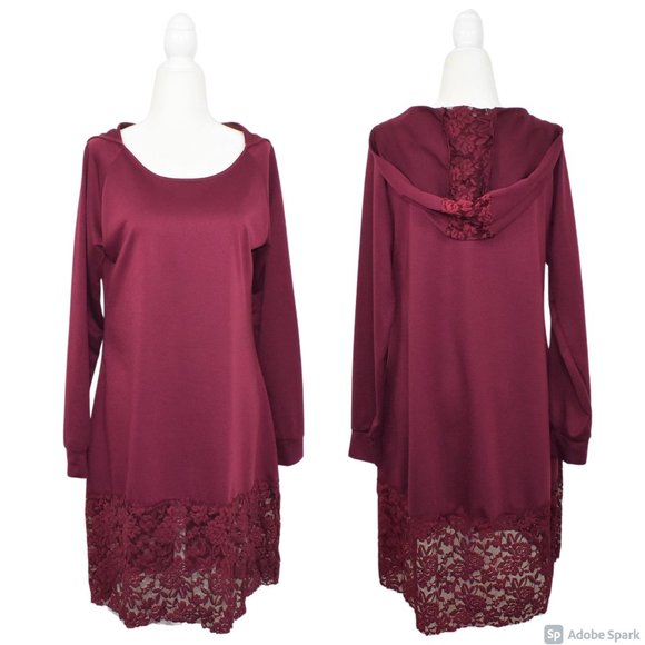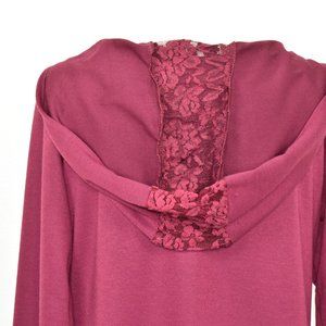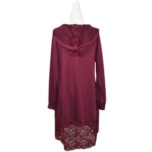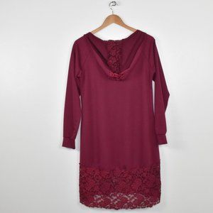 Womens Whimsigoth Hooded Lace Hem Long Sleeve Tunic Top Size M Burgundy Coquette
