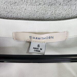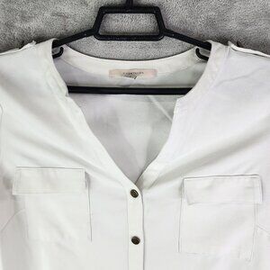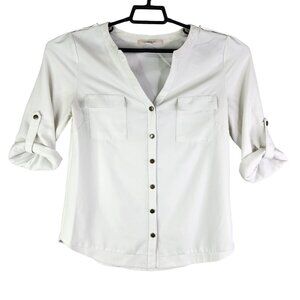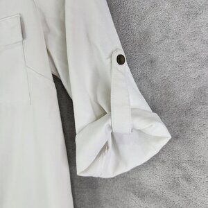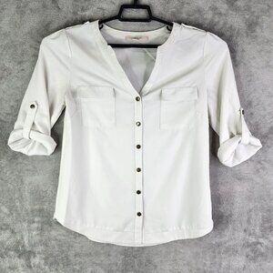 Womens White 41 Hawthorn Button-Up Blouse Polyester Roll-Up Sleeves Size S