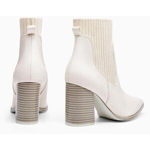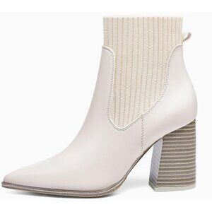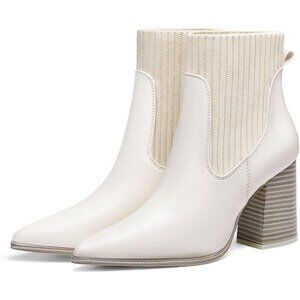 ⚡Women's White Ankle Boots Sock Booties Pointed Toe Chunky Stacked High Heel