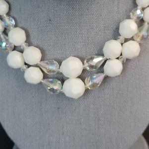 Womens White Beads Aurora Borealis Fashion Necklace Earrings Set Germany Made