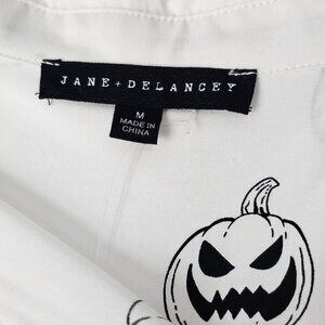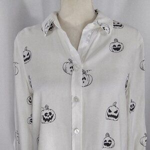 Women's White & Black Pumpkin Print Rayon Button Front Blouse Size M NWOT