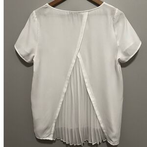 This woman's white short-sleeved pullover blouse from The Limited is sure to become a wardrobe staple! The blouse features an elegant accordion-pleated insert on the back, adding a touch of sophistication. It's lightweight and comfortable, perfect for work, play, or any occasion during spring, summer, and fall. Size S