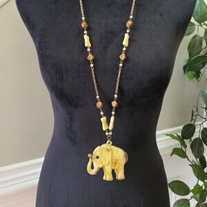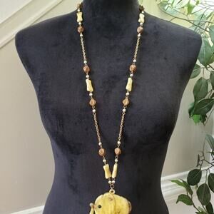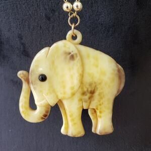 Womens White Brown Bead Tribal Style Celluloid Charm Elephant Pendant Necklace.