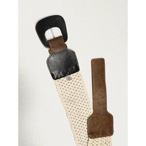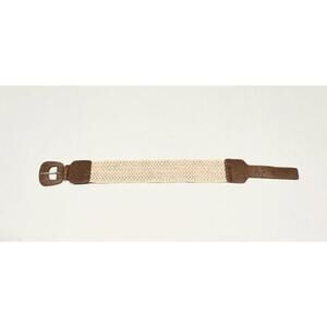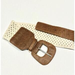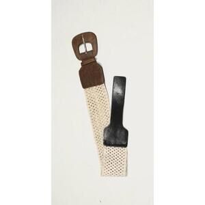 Women's White Crochet Faux Leather Straps and Buckle Elastic Belt Size Medium