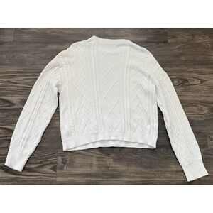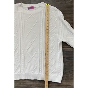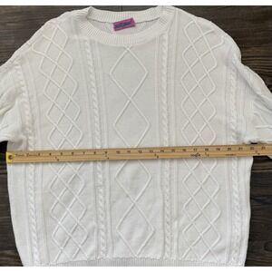Women's White Crochet Sweater Size L Oversized Fair Isle Knit