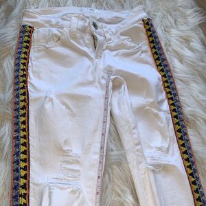 Women's White Distressed Embellished Beaded Skinny Jeans by Guess Size 24
