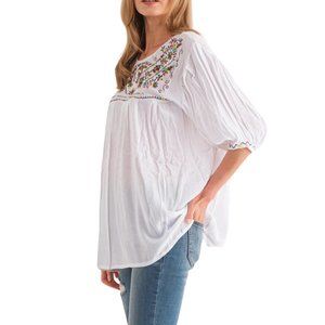 Women's White Embroidered Blouse Sizes S-XL Linen Blend Wear With Jeans Long