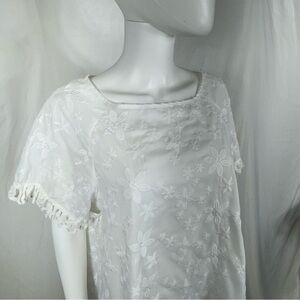 Women’s White Embroidered Floral Fringe Edge Tunic Dress