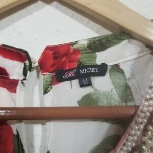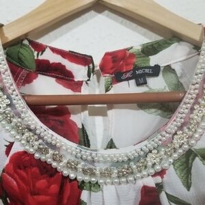 Cold Shoulder Blouse with Red Rose Floral Color to it