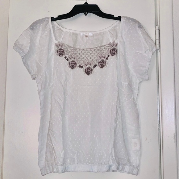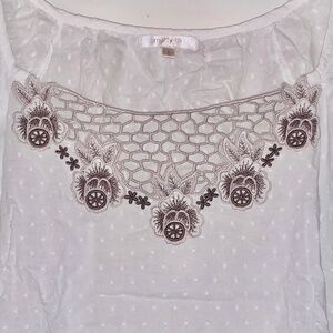 Women’s White Flower Crochet Front Blouse Top - Size Large