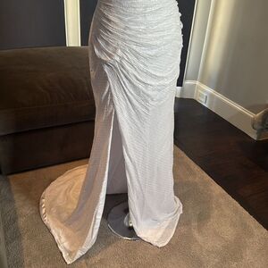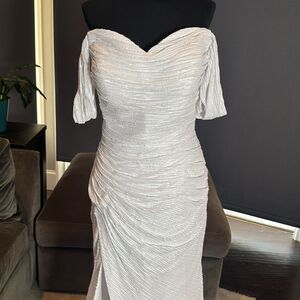 Women’s White Fully Sequined Off the Shoulder Dress Leg Slit Zip Up Back Size 8