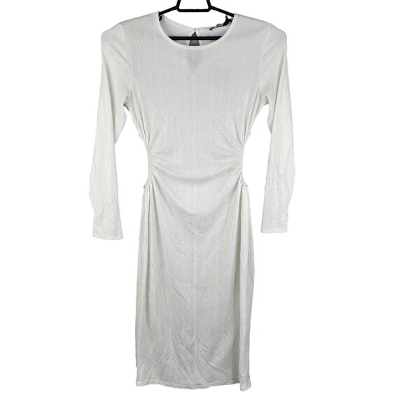 Women's White & Gold Pretty Little Thing Long Sleeve Ruched Bodycon Dress 10