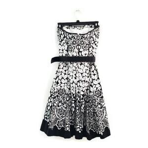 White House Black Market Women's Floral Strapless Fit and Flare Dress with Belt