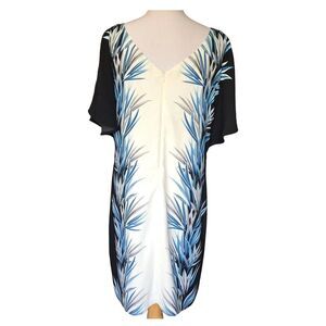 Womens White House Black Market palm print shift cold shoulder dress - Size 8