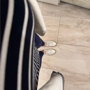 Elevate your style with this chic white jacket. Perfect for any occasion, it offers a sleek and modern look. 28” across bust, 25” long. Cotton spandex.