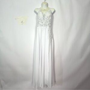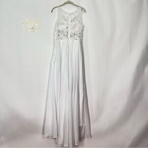 Women’s White Lace with Sheer Sleeveless Dress Sz 12