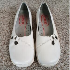 Professional white leather Klogs slip-resistant flats—great for healthcare, culinary, and service settings. Cushioned, supportive, and easy to clean.
