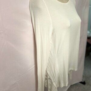 ☆ Women's Brand New (tagless) White Long-Sleeve Top with Lace Backing Crossed Cut Split. This Top is Amazing for Several Different Occasions! Sorry about the nips, for some reason the Mannequin arrived like this. I need to fix it somehow