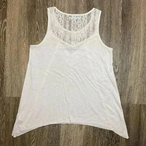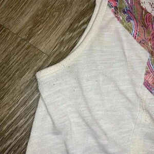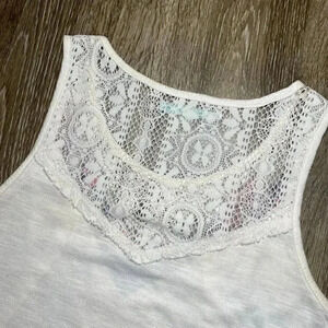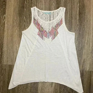 White/Cream tank top with lace sleeves and colorful detailing on front