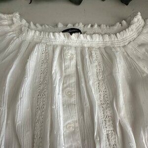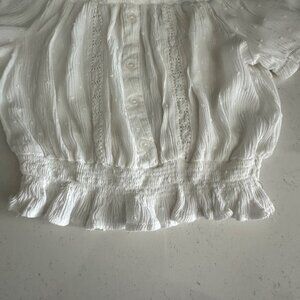 Womens White Off-Shoulder Smocked Crop Top Size M Ambiance Lightweight Cotton Bl