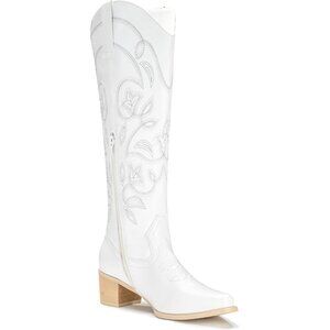 Women's White Pointy Toe Faux Leather Western Cowgirl Mid Calf Boots