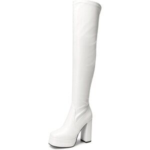 Women's White Polyurethane (PU) Square Toe Over The Knee Thigh High Long Boots