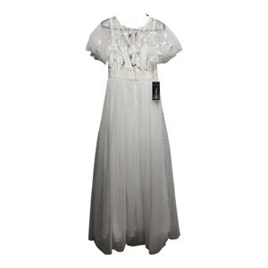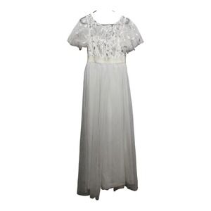 Women's White Sequin A-Line Evening Gown โ Short Sleeve, Formal Long Dress, M(6)
