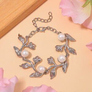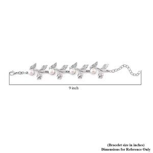Women's White Shell Pearl Bracelet with Leaf Design in Silvertone