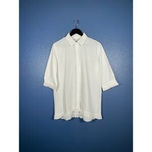 Women's White Shirt Medium Button-Up Ruffled Hi/Low Hem Summer Casual