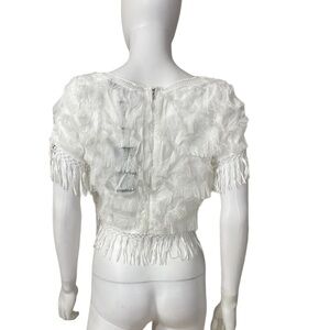White Short Sleeve Fringe Feathery Top Size S Condition:New