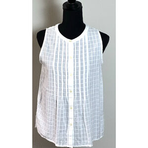Womens White Sleevless Top By Loft Bottom Down Size SP 100% Cotton