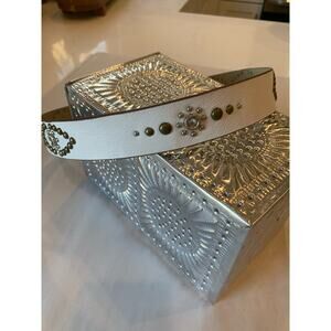 Womens White Studded Belt Faux Leather Rhinestone Stars Glamorous Cowgirl Flaw