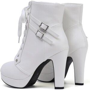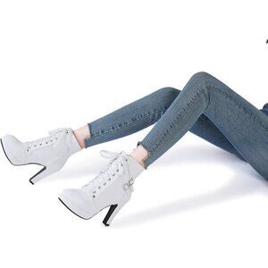 Women's White Susanny High Heel Platform for Sexy Lace Up Mid Calf Boots