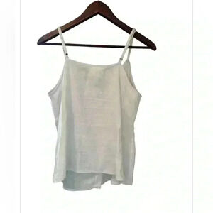 Women’s White Treasure & Bond V neck Button Down Camisole, Size Medium Linen Blend