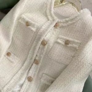 Women’s White Tweed Jacket Gold embossed button detail XL