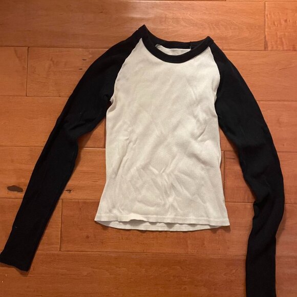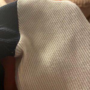 Long sleeve navy & white ribbed top! logo is slightly faded.