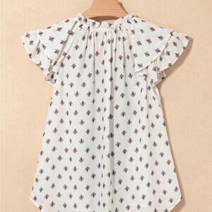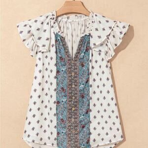 Women's White and Blue Boho Patterned Top | Sizes M, L and XL