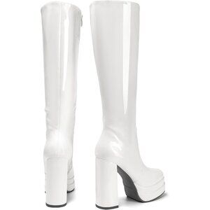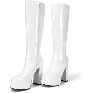 ⚡Women's White pat Faux Leather Platform Heeled Knee High Long Chunky Tall Boot