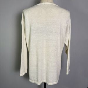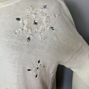 Women's White/Ivory Beaded Snowflake Sweater Holiday Embellished Crew Pullover