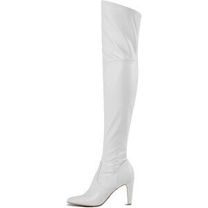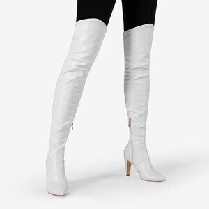 Women's White/Pu Faux Leather Thigh High Over The Knee Long Pointed Toe Boots