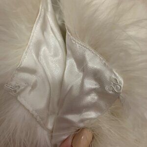 This sleeveless vest adds a touch of elegance with its faux feather design. The soft satin lining ensures comfort, ideal for layering.