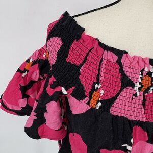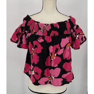 Who What Wear Floral Print Off-Shoulder Top Womens XS Multicolor, Short Sleeve