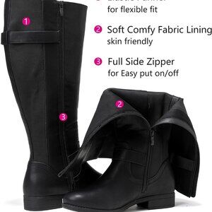 Features: These tall boots are designed with extra-wide calves and roomy wide feet, so no squeezing! The man-made leather feels nice and durable, and the leather-and-rubber soles give good grip. The low stacked heel means you’ll be comfortable all day, whether running errands or heading out for weekend brunch. An elastic band and sturdy zipper make for easy on and off, and the high-density memory foam insoles give a surprisingly cozy feel.